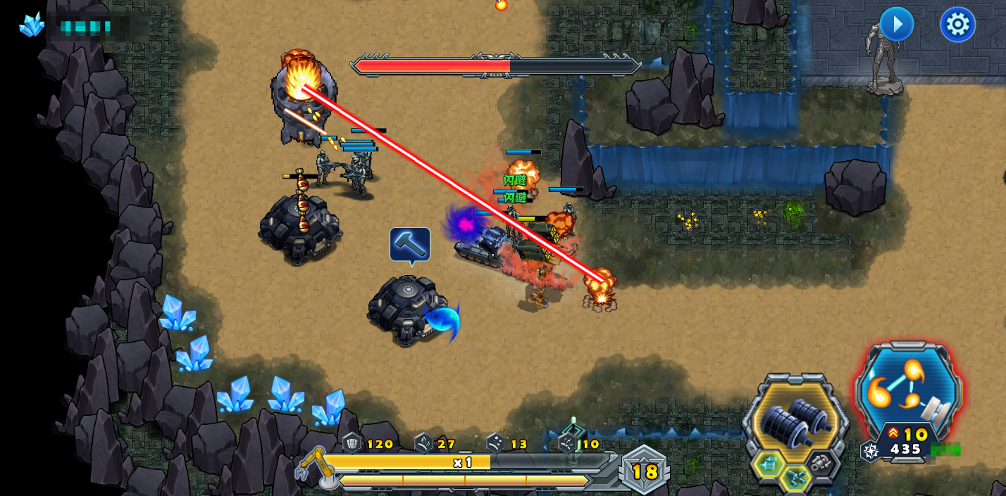 『沙丘魔堡』作为《异星要塞》中独具特色的战役,内含关卡与前面战役玩法大不相同,采用复古的即时战略出兵对攻模式,对玩家的策略和操作有一定要求。挑战前的充分准备1.枪塔更换,实力升级积攒 500 氪石后,果断购买机甲战士,同时免费解锁火箭炮枪塔。在车辆配置上,主车选用履带坦克(皮厚耐打),副车配置机甲战士,为后续战斗做好车辆配置优化。2.车辆配置装备主车履带坦克:装备了红色装备“原子切割”+