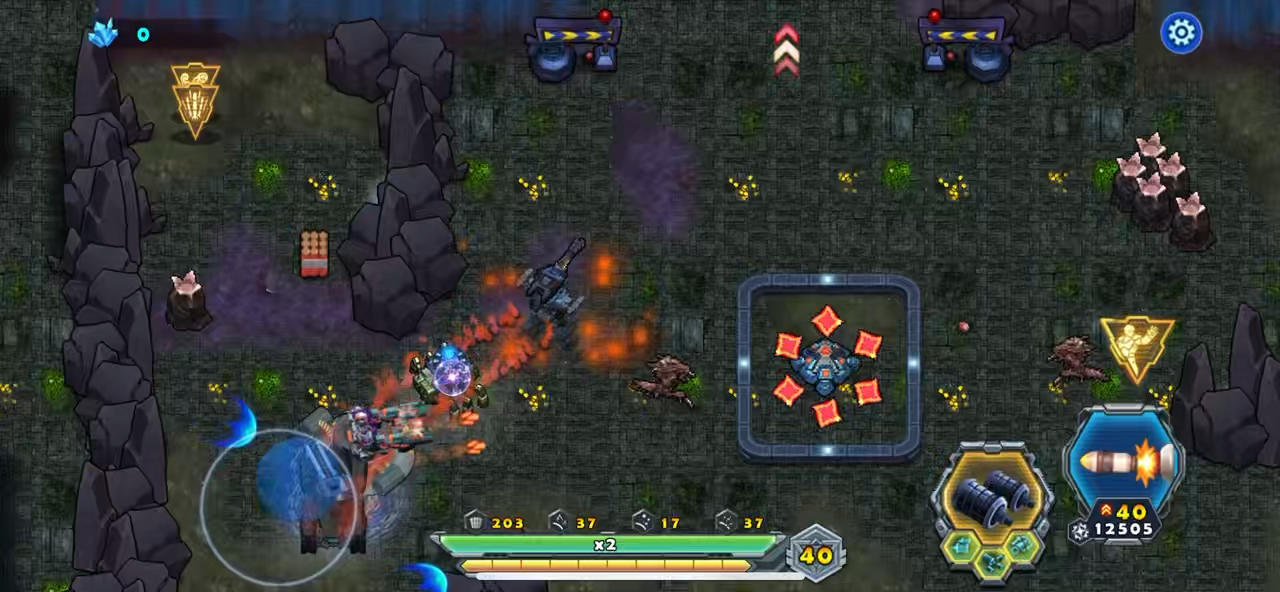 玩家在攻打关卡的战斗中往往会碰到敌人铺天盖地的子弹迎面而来,特别是噩梦难度的时候最突出,面对这样的情况玩家要做到攻击敌人的时候还能挡住敌人的火力,给新人玩家一个建议就是战车往前攻击时,投掷出双雷后快速的往后退一点,这样呢的辅助战车就到了战车原来攻击的位置成功抵挡住了敌人的火力,战车再往前继续投掷再撤回一点,反复几次敌人就被击败而战车不会被敌人打残或打掉。
