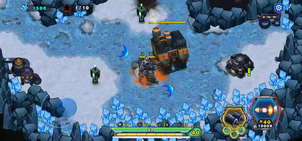 弧反应堆四个地图也只有第一关是用时最长的防御模式,战车要保护采矿基地不被敌人攻击在两条敌人攻击的路线上放置枪塔辅助战车打击各种敌人一波接一波的进攻,越往后敌人的火力也越强,玩家不用太在意基地会被敌人摧毁,采矿基地特别抗打只要敌人不长时间攻击基地都没事,重要的是保护好自己的战车就,最后的敌守关Boss不仅血多防高攻击力也强最好就是分开解决。