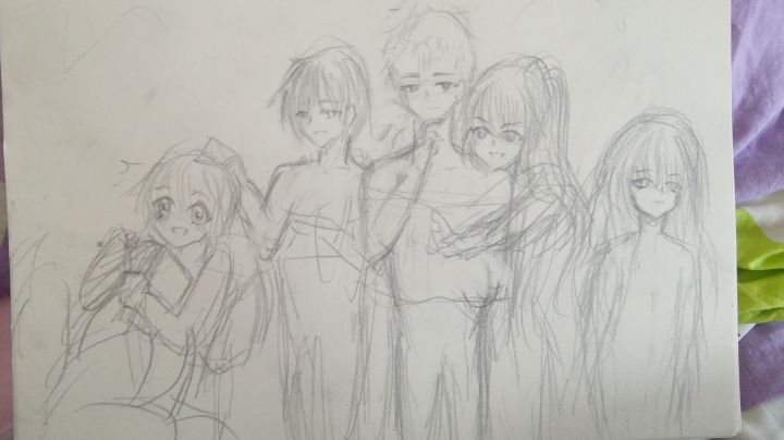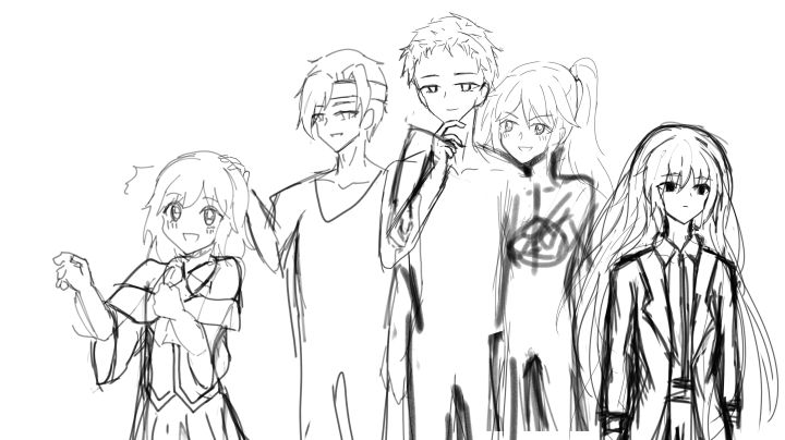 指绘同人洛克希+手绘草稿流卡莱尔+全家福草稿。(后面两张是参考。