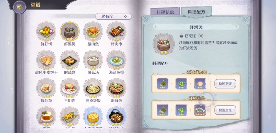 写在前面,晶透软肉和晶透胶质肉果然和猜想的一样是宝石晶瓢掉落 ———————————————————— 昨天说好的67种烹饪料理全图鉴来了 有的朋友可能会说为什么是64种,这是因为又出BUG了呗。。。 第一个BUG是“普通料理”没有被统计到图鉴中 第二个BUG是“鬼脸南瓜”的两种食物没有开放,但图鉴已留位置 不过没关系,我一样会把食谱写出来,67种食谱,一样不少,具体如下: ———————————