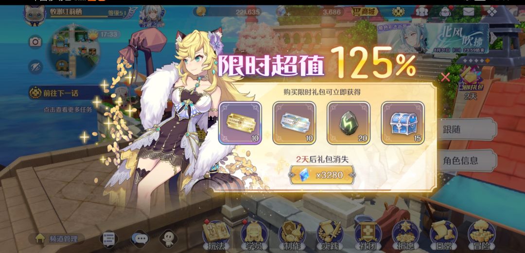 写在前面 新版本可能因为卸载重装的原因,系统设置全部变初始设置了,包括各地图的初始进入点也重置了,大家注意要重新设置一下。 ———————————————————— 1.主剧情 第七章一共四个章节,体验不错,提醒通关后的限时礼包为两天,价格3280源晶,想买的白嫖党做好安排 剧情上出现个新角色弗拉米尼亚 玩家终于有了新的设定,能成为魔王教团的同胞或高层? 顺便吐槽下法露露和米埃尔,你俩觉得冷没想过