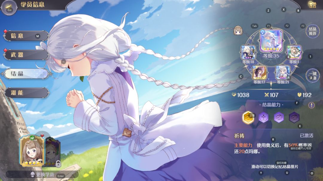 讲道理,这个新辅助在往后一段时间里必定是玩家阵容的常驻之一。在这里说说我配结晶的理解。 先上图,再说为什么。 这套可以说是每一个玩家手里必定有的一套,十分平民。(那个4⭐水加防御,增加生存,不是必要) 然后是分析。我们都知道舞娘的辅助能力之一来源于连携,那必定会产生卡手。毕竟如果不是一般的冒险图(比如巴别塔)你没机会攒支援点。 然而 懂了吧。这个结晶牛在进图就有一点支援点,让你快速启动。而且最重要