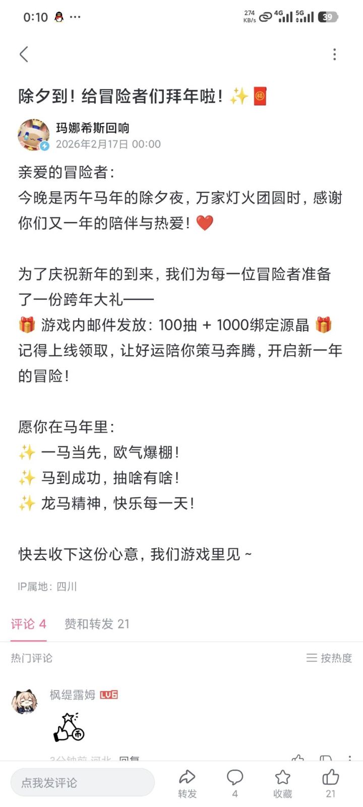官服本月16号 福利大放送!送角色祈愿抽卡券50抽,结晶祈愿抽卡券50抽,共100抽!请注意✋🏻本次福利 仅 发 官 服,无损转服请找小酱。 taptap下载的包就是官服包 也可以下载下边地址#玛娜希斯回响 玛娜官方服32位包:https://hotfix-public.inutan.com/%E7%8E%9B%E5%A8%9C%E5%AE%98%E6%96%B9%E6%9C%8D32%E4%