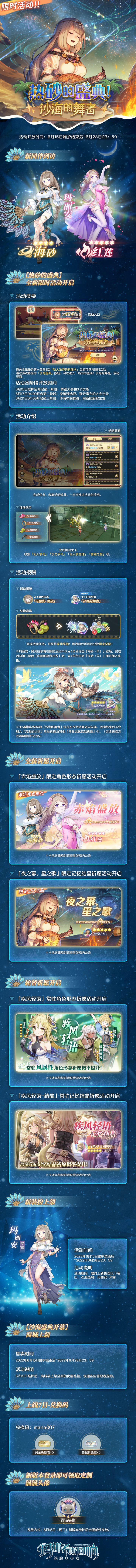 游戏服务器已于2022年6月20日22:50进行不停服更新,由于此次为不停服更新,维护时已登入游戏的冒险者不受任何影响,若出现掉线的情况,重启游戏客户端并更新即可,对此给您带来的不便敬请谅解,祝您游戏愉快。