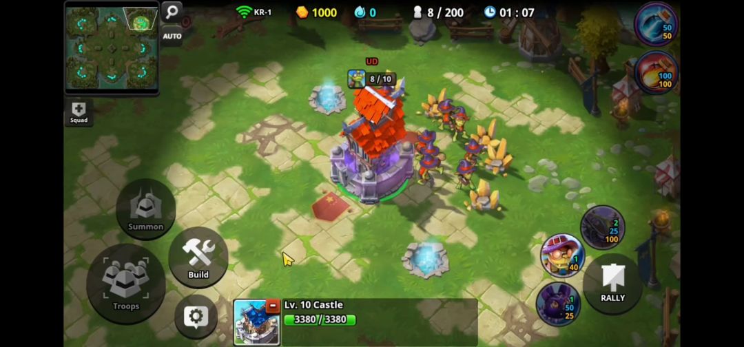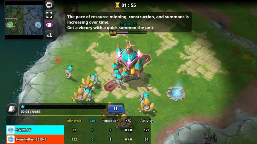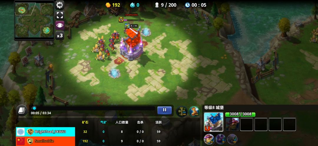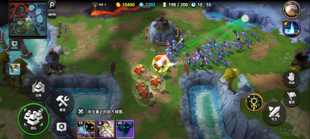 将金卡作为英雄,操控英雄卡牌攻击中立士兵,击败就可获得击败的士兵,没有基地。五分钟之内不能开战。五分钟之后,需要击败对方所有的士兵,即可获得胜利。