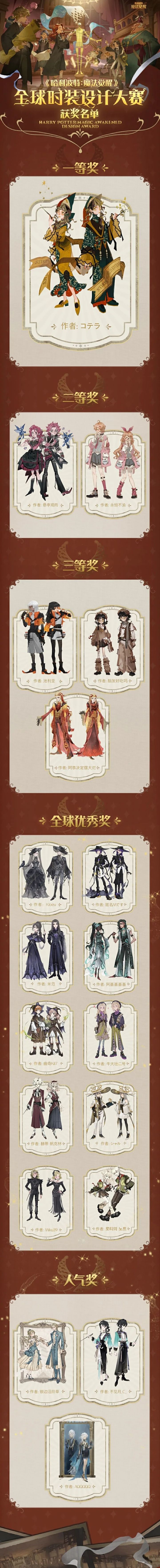 妙笔勾勒色彩与遐思雅绽一场关于“时尚”的魔法!《哈利波特:魔法觉醒》全球设计大奖赛正式落下帷幕!经历重重遴选与多方共同评定大赛获奖名单已新鲜出炉再次感谢所有参赛巫师的用心创作~快快点击下方长图,一起观摩获奖作品咕~*此为时装设计大赛作品原画展示,内容仅供参考生日倒计时贺图接力·2日*感谢绘制《三周年生日快乐》系列漫画的巫师:墨秃在黑湖的静谧岸边天赋异禀的音乐家卡洛正吹奏着悠