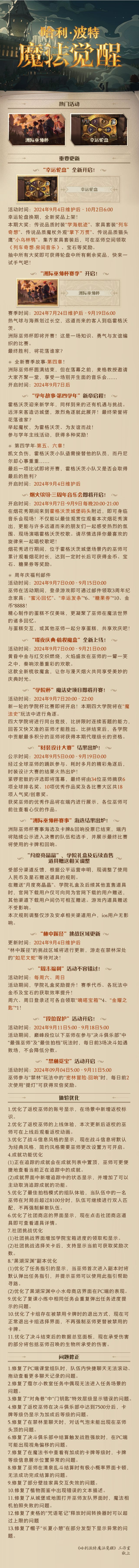 《哈利波特:魔法觉醒》9月4日维护公告
