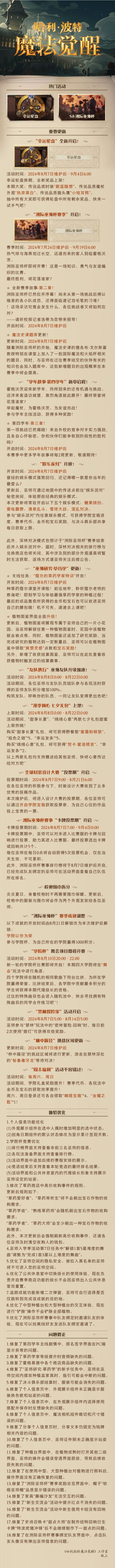 《哈利波特:魔法觉醒》8月7日维护公告