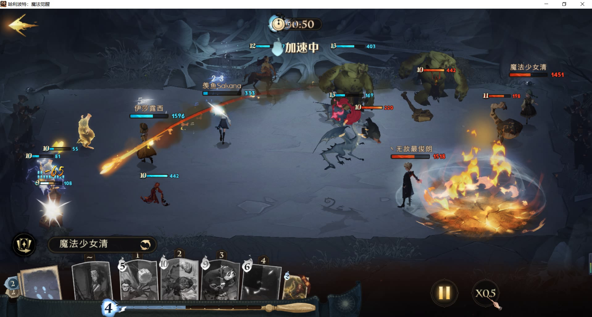 凤凰丢出来后,就无脑654 200 654 200,循环起来后就可以做到永远不缺移动卡还无限回蓝的永动机 关底摄魂怪最好换个统统加护啥的保护卡姐,保得好可以直接电死,快的多