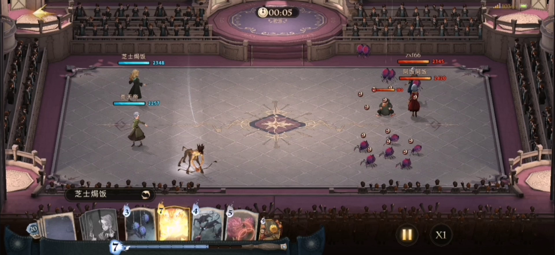 卧槽我以为我完了,崩得好厉害…… 队友血也不多,对面贝拉挺好打就是赫敏难对付,但是我跟队友都是赫敏(hhh)😁 (我不知道顶尖1为什么会碰到顶尖4,但是加分的时候多加了十来分对抗强敌分,针不戳)