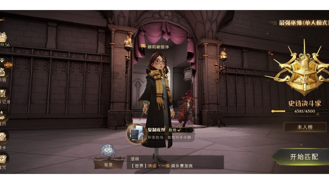 先上分段。杰出五到杰出六晋级局,2400分。算是中低分段吧。 本来之前一直养厉火流和贝拉三书换着打,前两天还新入了一套多重冰烟花,都是抄的作业(🌿)。结果拿去打排位打厉火就遇到烟花打烟花就遇到三书打三书就遇到厉火(我三书配的小蜘蛛小精灵)。然后分就一直上上下下死活上不去杰出六。一气之下就拿了之前用来上1000分的咒语玩蛇去打排位。 这把当时看到那个袍子和魔杖心都碎了。又是氪佬呜呜呜。中间对面三书马尔福一下我都不想打了,坚持着打下去居然翻盘了啊哈哈。回放的时候才发现缴械过掉了对面一张钻心还是索命(分不清),最后只剩一百血还过掉了一张神锋,斩杀也是靠的缴械。 总结就是除你武器yyds。不愧是揍食死徒专用咒语(狗头)。