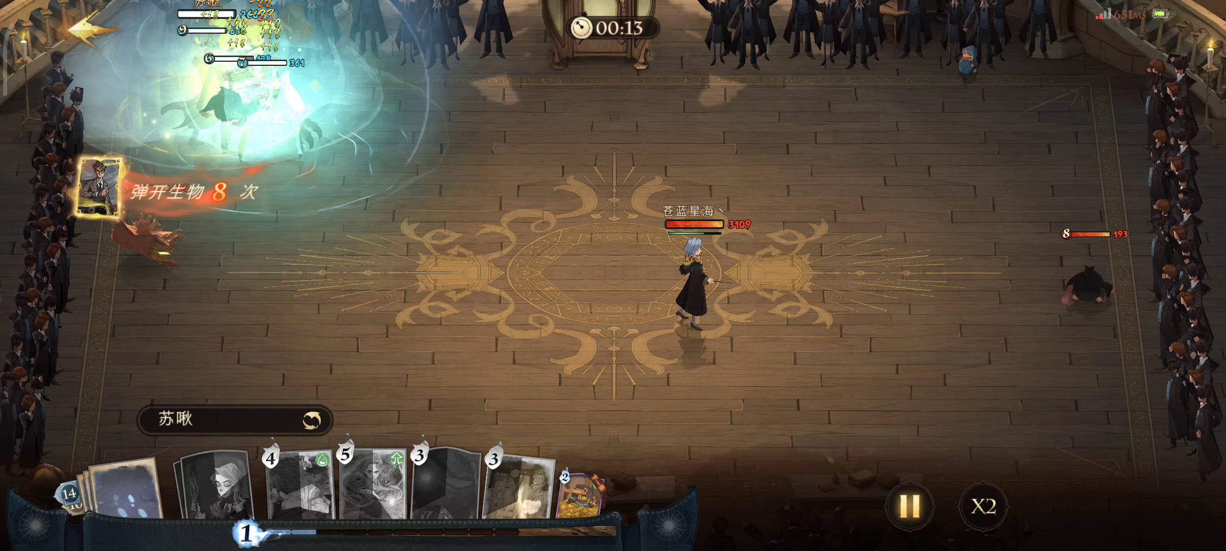 对面这种套路核心就是伙伴带卡姐和波特缩墙角保证对面打不动然后磨血获胜,一般就几个变种,一是带盾带加血带闪电风暴,缩在角落开盾,用烟花或者配合伙伴赫敏打一个双闪电风暴。二是带凤凰带盾带加血带火螃蟹带闪电,就是防御,闪电磨血能磨多少磨多少,拖到自动扣血获胜。这局其实打的并不好,太多操作失误,比如闪电出来没先下烟雾再加血,躲烟花判断失误等,白被打很多血,有一局更好的素材对面带的哈利,本来是个更好的例子但是找不到了。总而言之破法就是看好能量,如果对面没哈利只是单纯的卡姐护盾加回血,孵出龙蛋在龙喷火的时候同时放神锋无影或者烈焰熊熊这类技能,如果对面有哈利加护盾盾特别厚,就需要在龙喷火那一瞬间之前给哈利漂浮咒打断哈利的防护,龙喷火的同时放伤害技能,能瞬间破盾并秒了对面伙伴,剩下的对面这套路没伙伴就是慢性死亡。