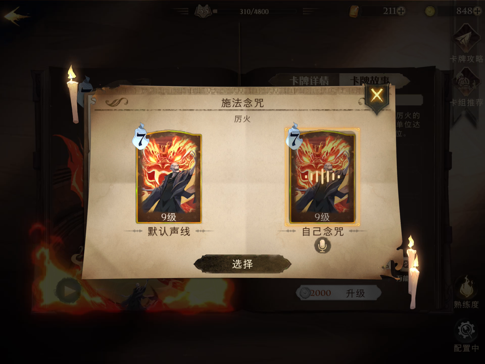 下场的时候听自己念的咒,哈哈哈哈。 让我看看你们都给自己的熟练度卡牌配了啥咒