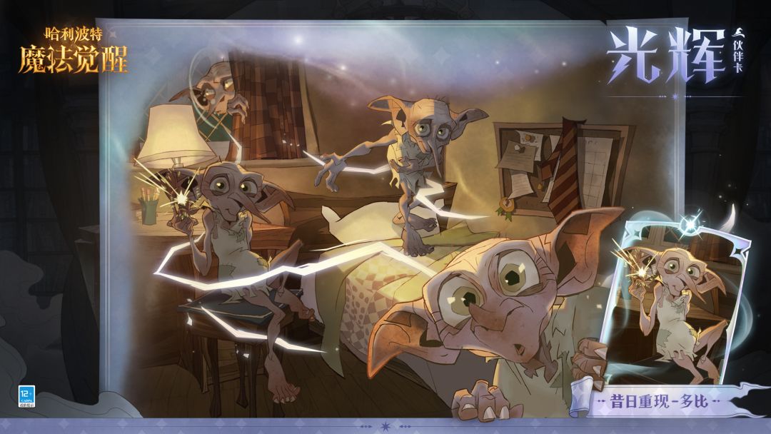 蝙蝠一般的大耳朵亮闪闪的绿色眼睛身为家养小精灵的它努力遵守既定规则的同时又有着追求自由与平等的勇气......全新光辉伙伴卡「昔日重现-多比」将于近期上线一起来看看这位自由的小精灵都拥有哪些与众不同的能力吧↓↓↓作为最忠诚的伙伴与盟友在朋友最需要帮助的时候多比总是能出手相助利用它擅长的幻影显形将同伴们带离危险的处境✦ 召唤多比,当多比在场时,每使用一张移动卡,你的下