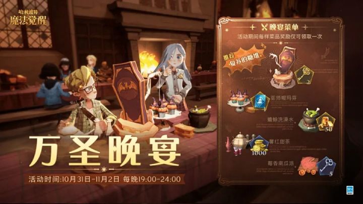 夜幕降临,巨大的魔法南瓜被定格在礼堂上空家养小精灵们正在厨房里忙碌着餐桌上精致的美食散发出诱人的香气抓紧时间!晚到可就吃不上复苏糖堆蛋糕了~ ✧活动时间:2024年10月31日-11月2日 每晚19:00-24:00✧活动内容:在活动期间,礼堂晚宴会烹制5中不同的菜品,巫师们通过品尝菜品获得奖励,每种菜品对应的奖励在整个活动期间仅可获得1次。 (此为研发过程中画面,所展示内容仅供参