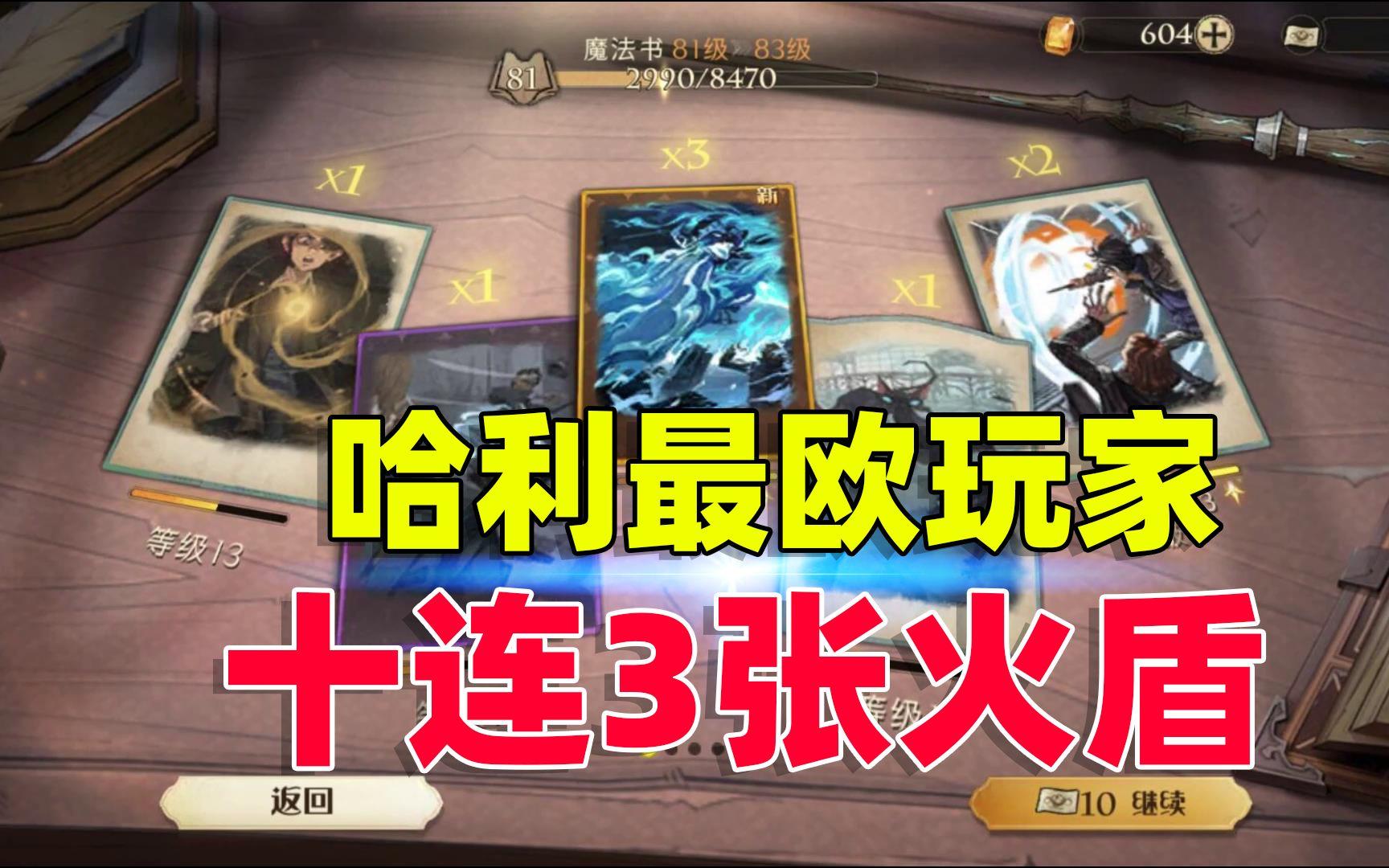 哈利波特魔法觉醒:哈利最欧皇的玩家,一个十连抽中3张火盾