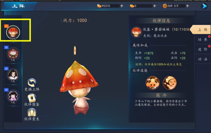 各位看官,独自一人闯荡江湖,是否少了几分热情?而在《一世之尊》游戏中,有萌萌的蘑菇妹妹,帅气冷峻的孟奇,魁梧的石巨人蓝霸夫,邻家小妹阮玉书,气质空灵的顾小桑,梨窝浅现的江芷薇,憨态可掬的奔波儿灞,七个角色可供选择成为伙伴,各位何不结伴而行?献给看官们四张精美截图(不要夸我,我会膨胀~此处一副傲娇脸)怎么样,有没有舔屏的冲动?大家收收口水,接下来让我普及一波伙伴获取途径可通过伙伴元神自动合