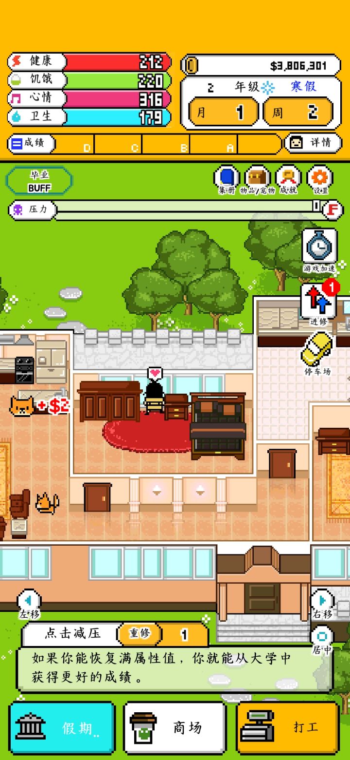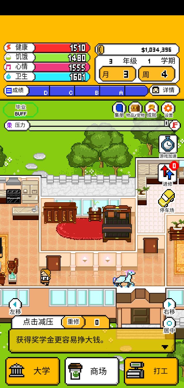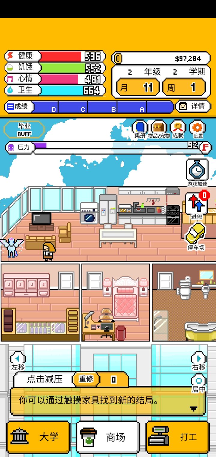 3.还有就是可能是因为我只玩了一个结局就受不了了退出了,恩姆,衣服是都买全了,租房还有家具都是最顶尖的,但是也只到够买小企鹅,后面的那些神兽都上着锁,唯一能给我安慰的就只有一开始不知道为什么就出现的小飞马(哦人家好像不叫这个名字哈哈哈对不起)