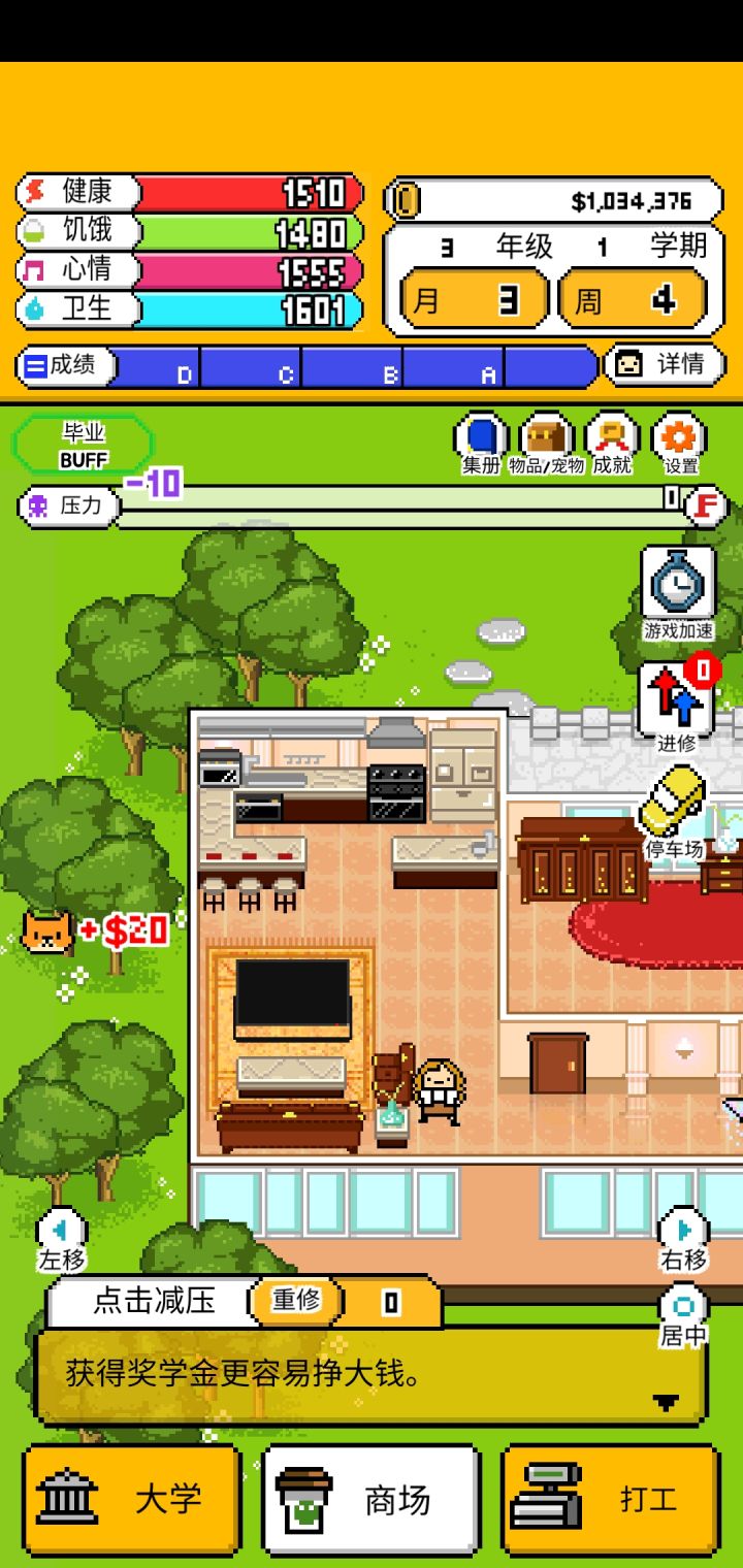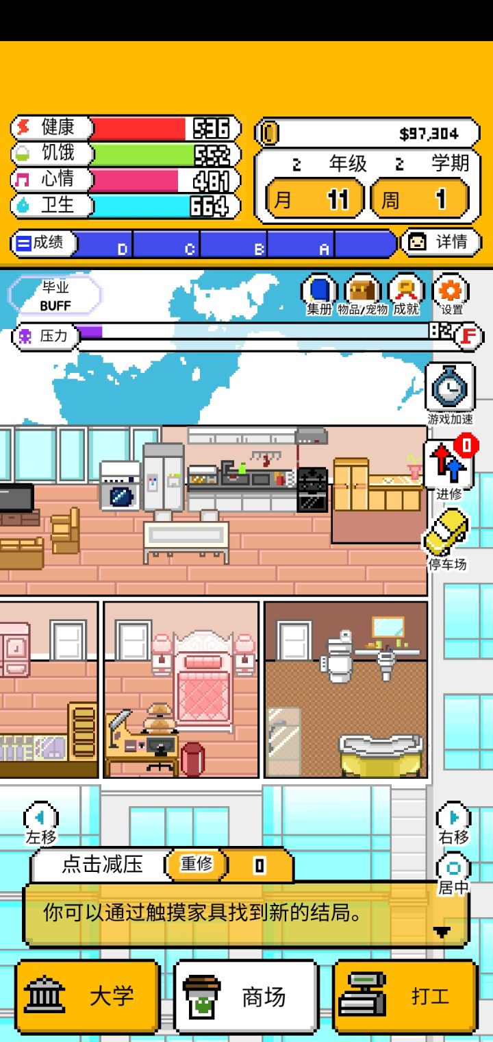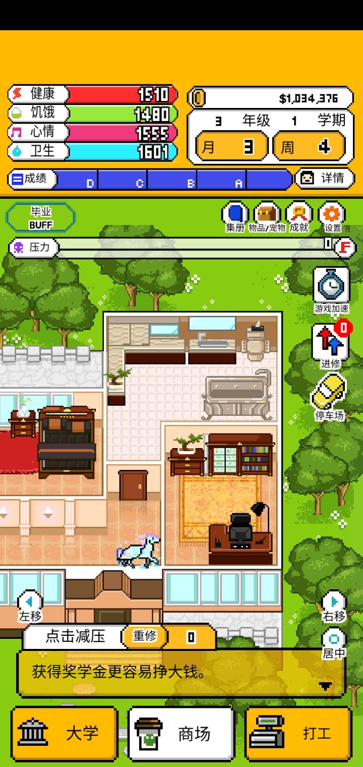 3.还有就是可能是因为我只玩了一个结局就受不了了退出了,恩姆,衣服是都买全了,租房还有家具都是最顶尖的,但是也只到够买小企鹅,后面的那些神兽都上着锁,唯一能给我安慰的就只有一开始不知道为什么就出现的小飞马(哦人家好像不叫这个名字哈哈哈对不起)