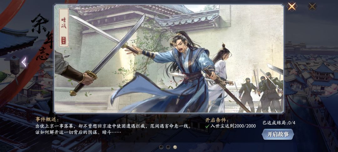 4月29号更新后新命数 失踪谜案 要求入尘世1000 ❶侠骨丹心 要求一个证物 直接点进去左上角任务一直到完成任务拿到证物 ❷迷雾重重一 需要收集4个证物6个线索 ①检查上边地上左右两边各两具共四具尸体 院子逛逛右上冯安拿到证物 右下刚出院子下那个监察院弟子有个支线任务沿着脚印走拿到马匹线索 ②对话范闲拿到线索迷香灰烬线索 ③任务进入房间检查拿到书架线索 房间任务完成后有个隐藏任务 桌子可以打掉拿