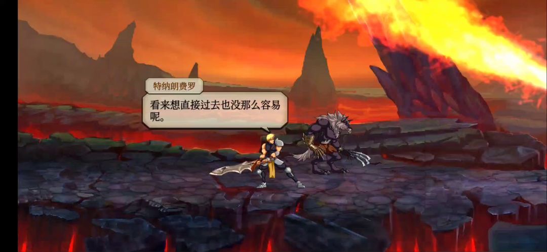 在完成了竞技场的挑战后,佣兵误入了熔岩地带的一处洞穴之中,在这里,他遭遇了一个神秘怪物的袭击——由岩石与岩浆组合而成的熔岩巨人,它那强大的力量令佣兵战栗不已;但最终,佣兵在惨烈地战斗中赢得了胜利。熔岩巨人拥有着极高的防御力与攻击力,在对其进行攻击时需要备好充足的药剂,增加自身的攻击力与防御力,并在血量不多时及时回复血量。熔岩巨人一共分为三种形态,第一种形态会手持石棍攻击玩家,玩家可释放宠物吸引