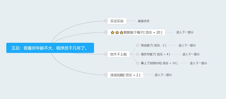 面试分为三个部分 Part 1 问能力 ;Part 2 问失败经历 ; Part 3 问理想的公司-------------------2020.3.25修订版,感谢以下大佬的指正------------------四楼大佬“非酋来袭”指正 Part 2 改变性取向是 王总关系值 + 5,而非信任 + 5。/感谢五楼大佬"希望之星"指正福利放送 郭佳佳-希望进后可以少提需求缺失了 孟