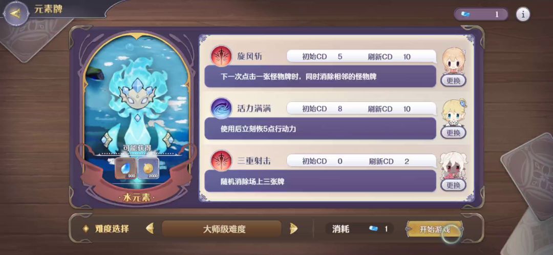 元素牌大师战,感觉各种元素没差别,算好CD莽就是了。