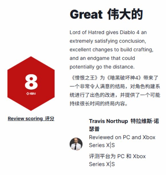 《暗黑4》憎恨之王DLC获IGN 8分好评,剧情封神新职业超吸睛