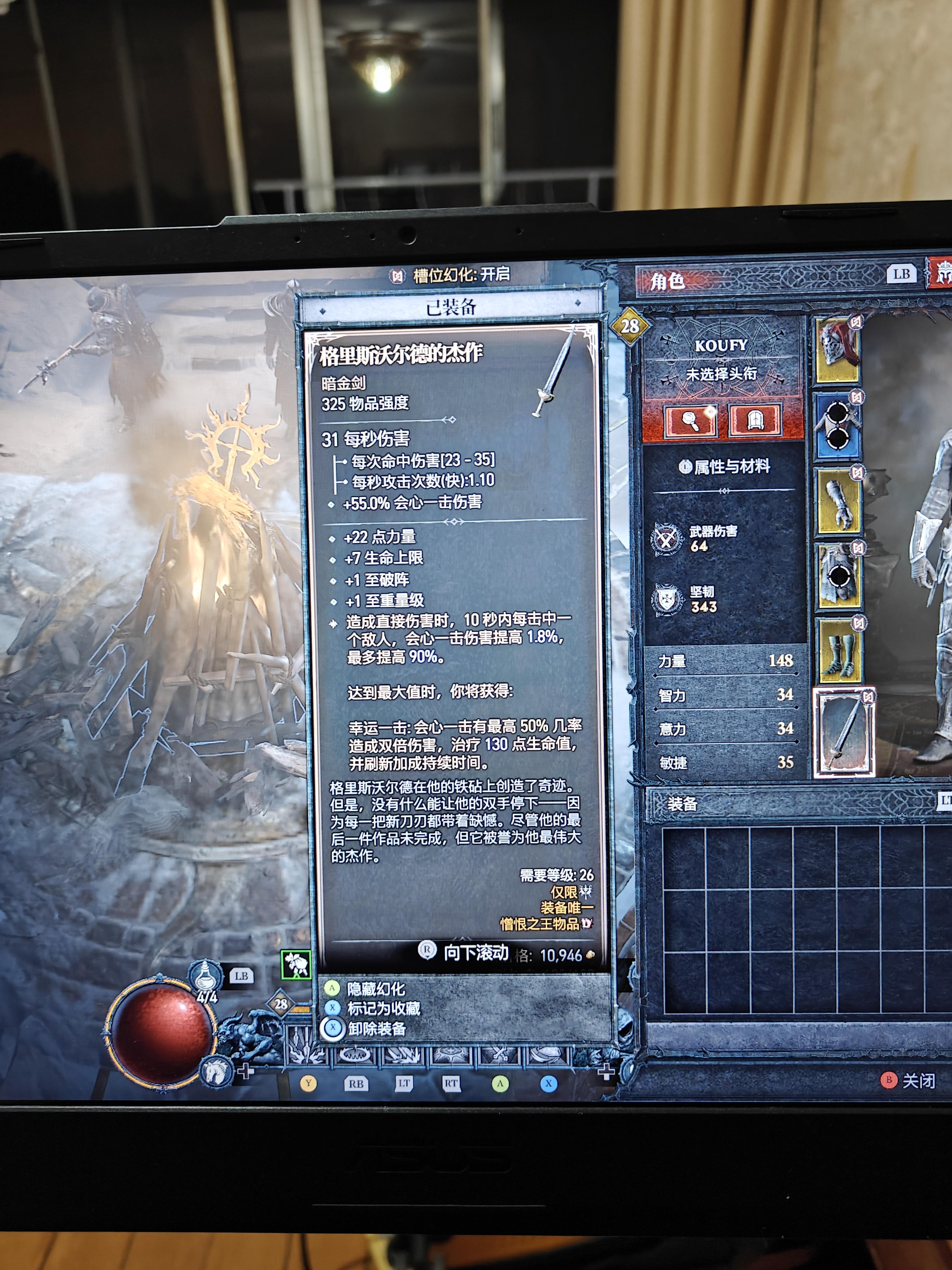 这个应该不是支线送的那个满配的吧,我跳主线了,结果不知道咋来的暗金装备,才26级我怕把支线的那个给用掉了