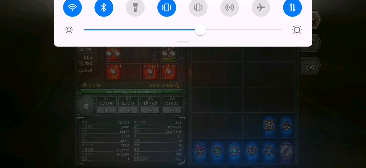 需要的装备难爆,比如暴击弓秀逗魔导士,总共只爆出三把,还都是五阶的。本来武器位想弄把六阶恶魔,但是只打出一把,只好用这把刷装备的贪心将就。套装感觉很鸡肋,大部分都不带➕所有能力的。项链上有个拒绝的技能,能使击退怪物,它有个严重伤害30的属性