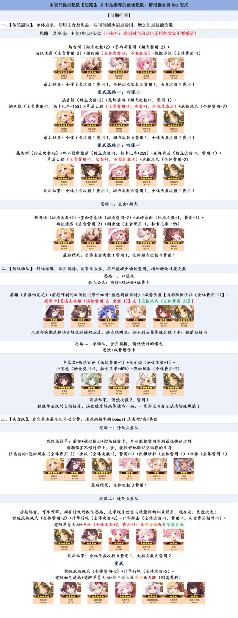 料理次元配队思路以及节奏榜单