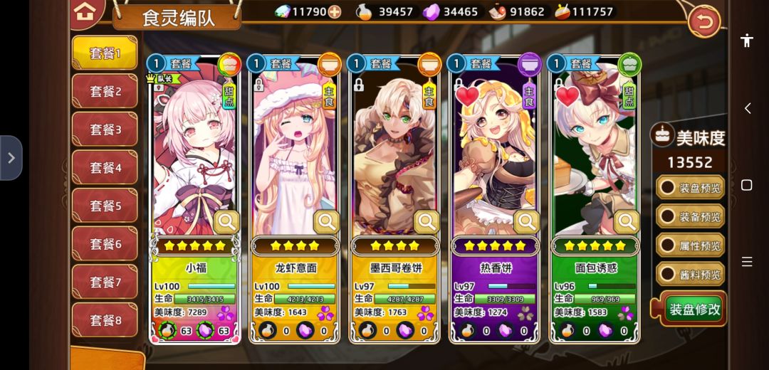 包括了品质,觉醒练度,打完最后一关战损情况 以及装盘情况 然后五星有些是米饭喂到这个练度,有些是抽或者活动送的 一队甜品是最稳定的,实际上大福换成甜甜圈和面包诱惑一起单秒后排更加合理,一个半吊子群伤一个高单伤很容易伤害溢出,而且面包诱惑如果不点味道索敌,自动索敌机制是血量最少那个,所以开自动会丢很多伤害 但是大福有活动送好多,所以先升着了,有条件得觉醒,三觉大福群伤稳定很多 (甜点觉醒素材建议刷四