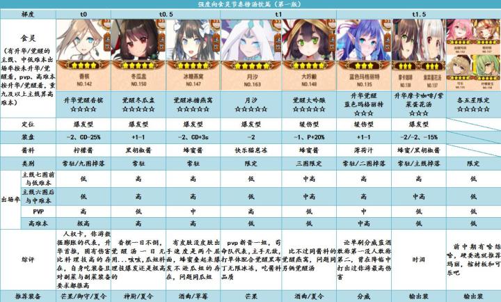 料理次元配队思路以及节奏榜单