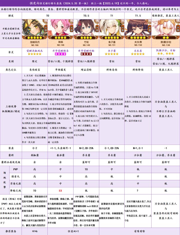 放个牢大镇楼,事先声明由于本人不是前世玩家,以下内容仅为个人总结,想到哪里写到哪里。你游也不知道还有没有多少新人(活人)食灵分类游戏内食灵共分为6种:主食:定位(前排)坦克,主要给中后排提供输出环镜以及少量增益(增益多为给甜品增加数值)主菜:定位战士,主打一个能抗能打,不过大多数既不太能抗也不太能打,能挑大梁的一般自己一个人C副菜:定位辅助,给己方施加增益,敌方减益甜点:定位单体输出(
