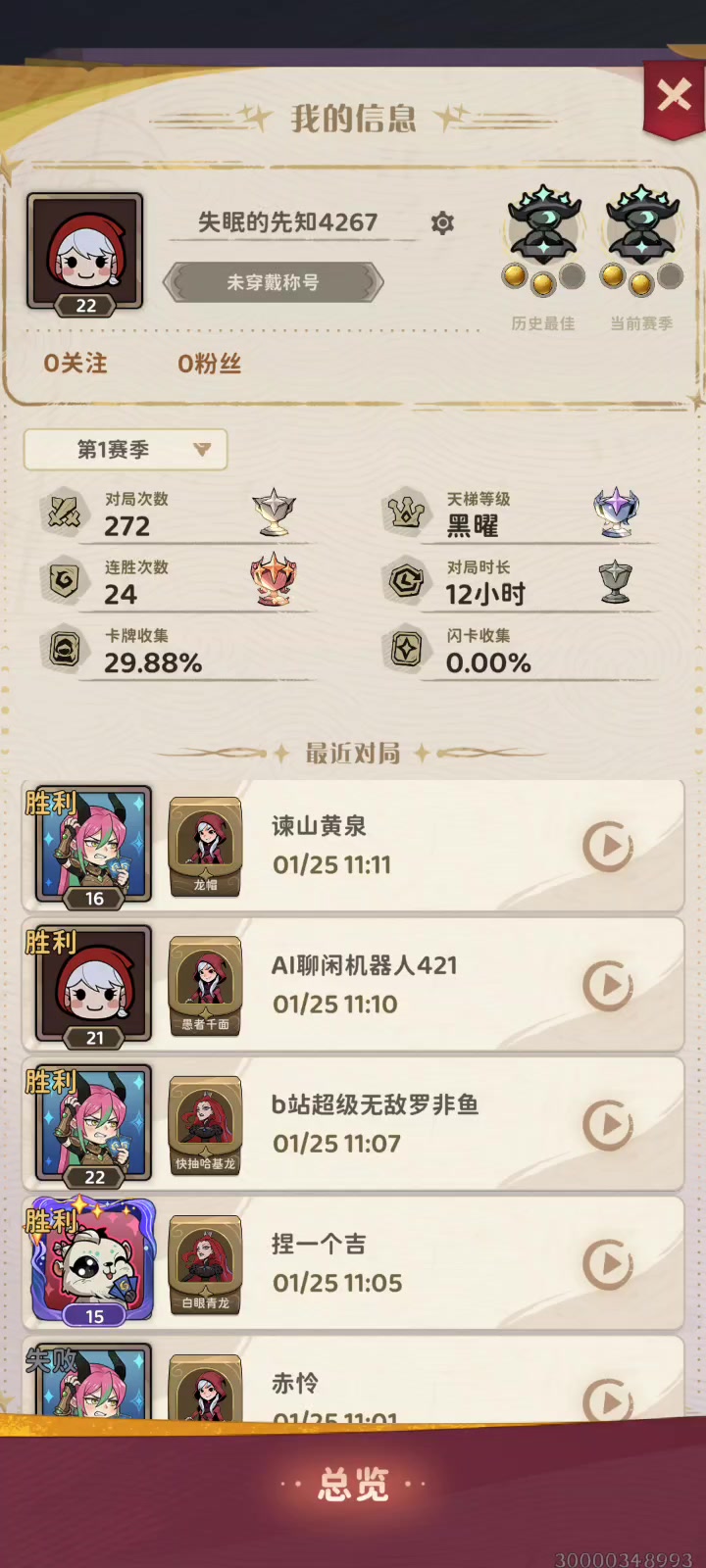 游戏昵称:大D UID:30000079993继上次的1元党上传说,这一次为了特地尝试一下于是克制住了自己的双手也是用机械帽再次打上了传说(虽然场次比较多) 但也总算是一直用这套打上的传说,为机械帽正名先说机械帽在这一测中的生存环境,这次由于没有了苦守【生命值低于10以下时恢复10点生命值】这张牌,导致极度依赖觉醒的机械炮的这个打法变得非常尴尬。比如像狼人的斩杀线在12+12+8+8+8,而人