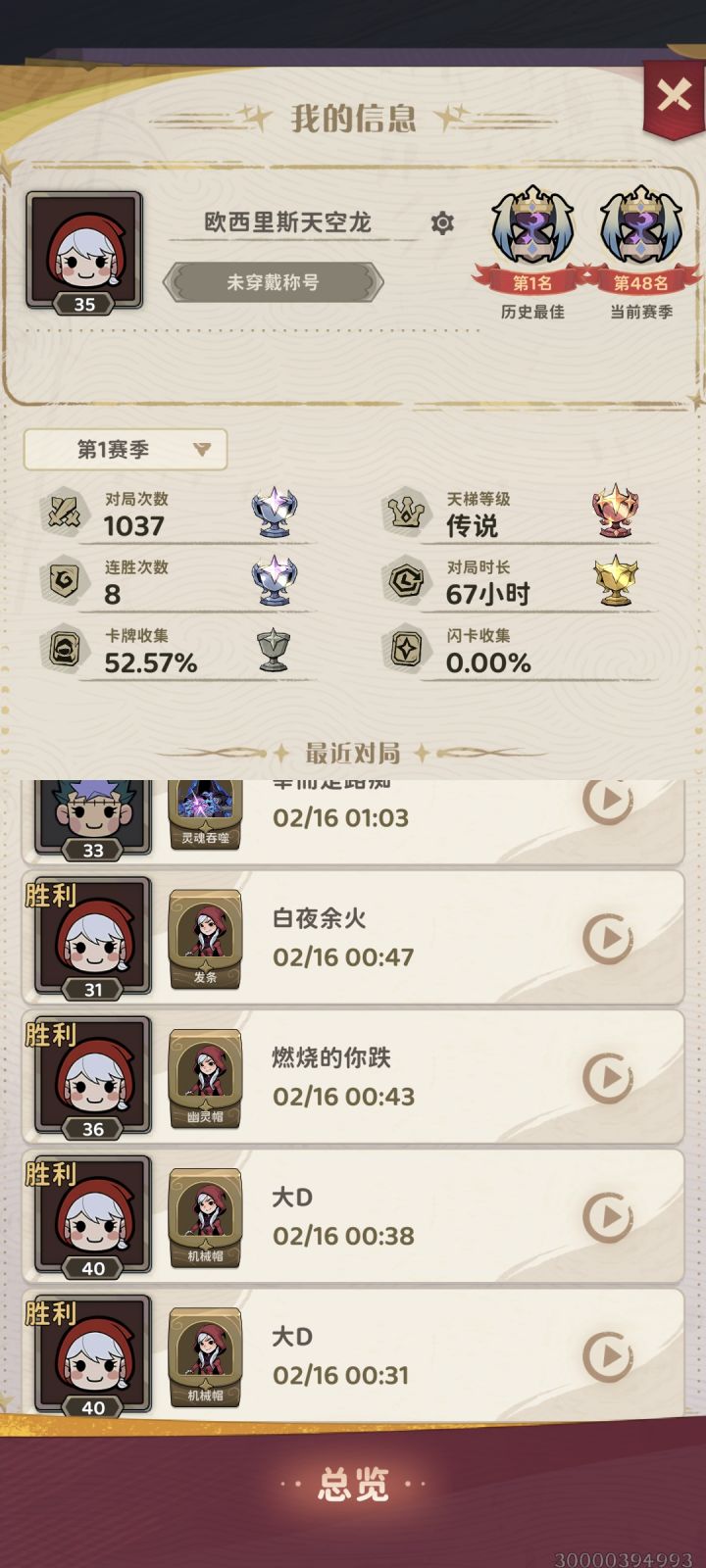游戏昵称:大D UID:30000079993继上次的1元党上传说,这一次为了特地尝试一下于是克制住了自己的双手也是用机械帽再次打上了传说(虽然场次比较多) 但也总算是一直用这套打上的传说,为机械帽正名先说机械帽在这一测中的生存环境,这次由于没有了苦守【生命值低于10以下时恢复10点生命值】这张牌,导致极度依赖觉醒的机械炮的这个打法变得非常尴尬。比如像狼人的斩杀线在12+12+8+8+8,而人