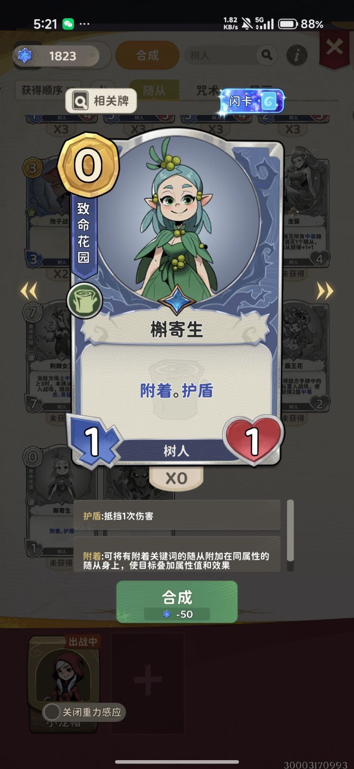 蓝卡高贵的树人词条+1+1身材高贵的附着词条只要零费紫卡没有词条一费