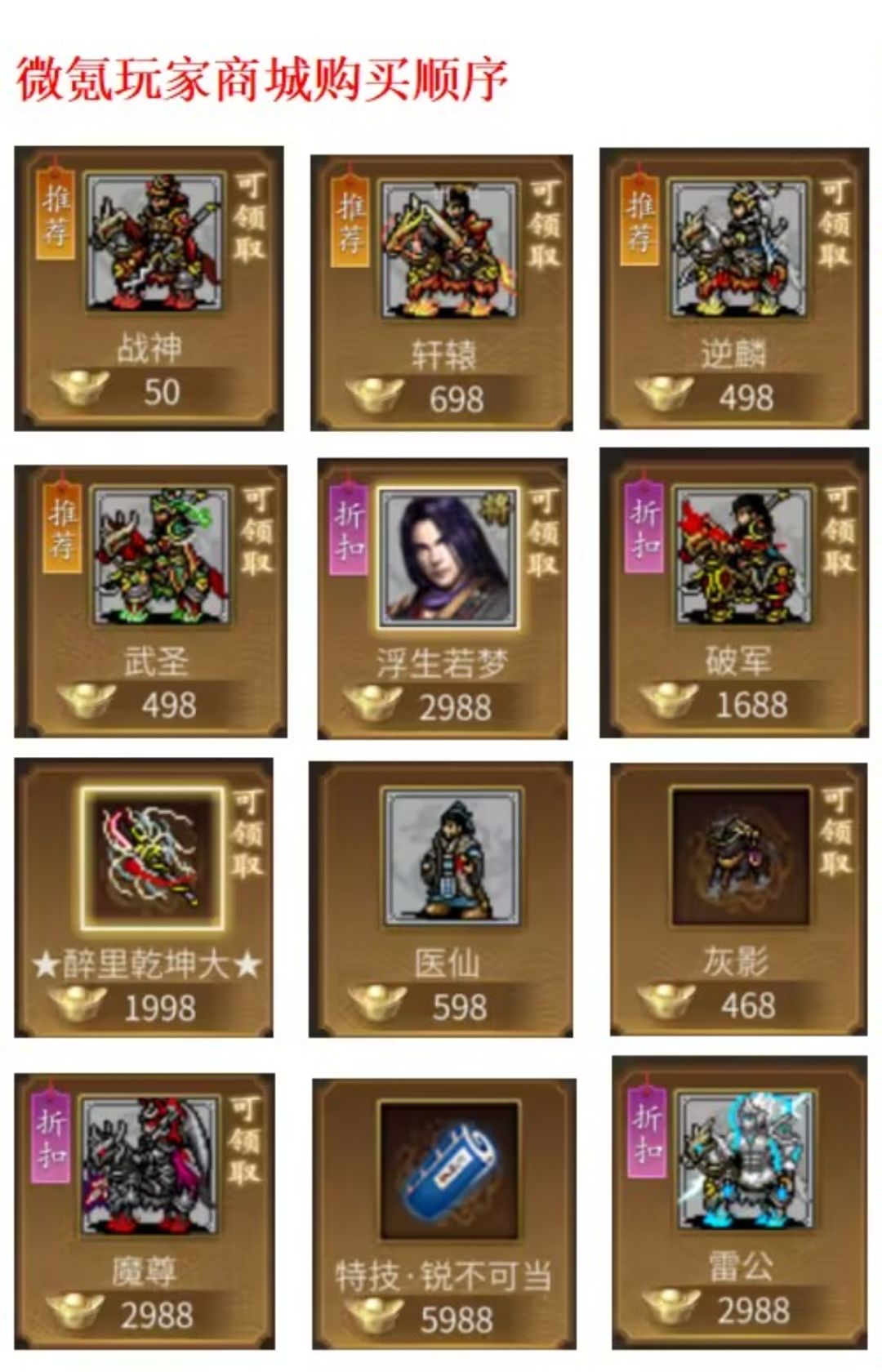 地狱剧情打手就2个足矣,必备炸清图,砍收尾。 新玩家 存元宝购买:刘备轩辕;关羽武圣和水君;张飞战神;赵云逆鳞,雷公;简雍阴阳师;孙乾医仙。浮生,浮生的天罡和破军;司马懿,司马懿的贪狼。 装备 :灰影,木马,真乾坤玉,真阴阳镜。 特技:锐不可当,谋无遗策,蓄势待发。 其他都别买了。纯浪费钱。切记切记节假日购买8折。 浮生:武力果+圣套,神浮生更好buff效果。 必备特技:锐不可当,攻击书1,2,3