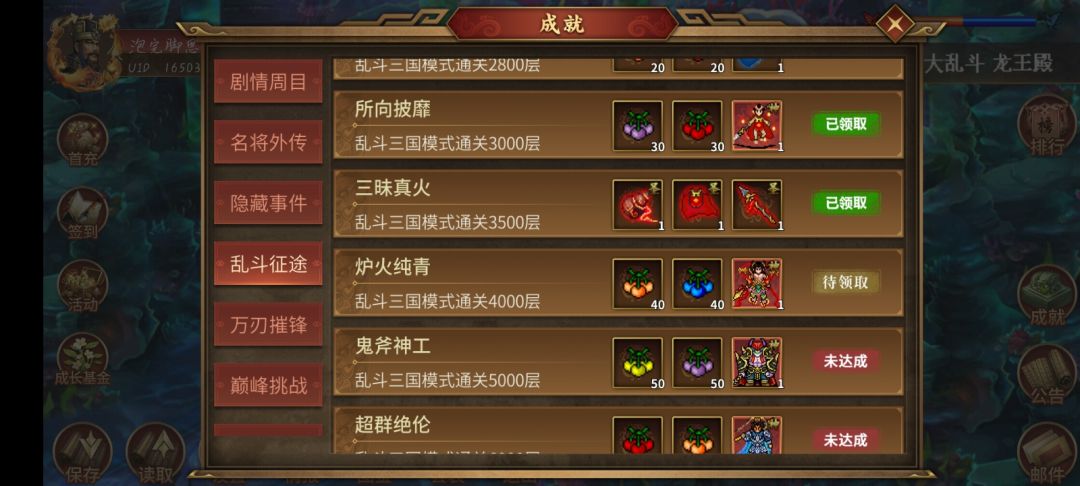 一、前言 首先說明本人為VIP1玩家,此篇內容皆是以我現有資源去攻略(包含1課金神將印、挑戰成就合成1神將印、VIP禮包內的特技:雙倍傷害、無視精神50%、無極二、VIP銳...等)所記錄下來的資訊,或許有些沒記錄到的,可能是影響不大被我忽略了,還請見諒。 200層 敵軍多真傷防禦I(5%) 敵我多圍攻鍵 400層 敵軍多不少星裝 450層 敵軍多真傷防禦II(5%) 500層 每層敵友軍能力上升
