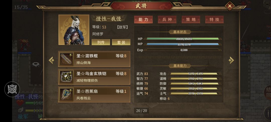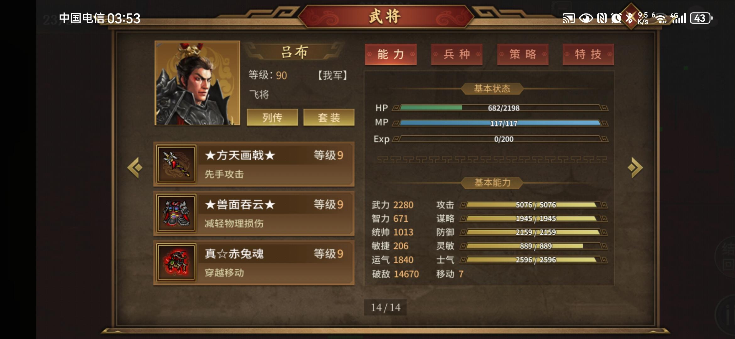 虽然挑战一不影响拿神将印,但是对于想要换勇者之力的玩家来说,此关和墓王穴都是必打的。 此攻略只适用于v群有点资源的小氪玩家,不需要月光和戒指。机制本,需要较多特技,不适用平民玩家。 出战界面。 根据出战位顺序:每两个武将为一路 注:4000精神为了抗住司马懿全屏,4000防御是为了抵抗最后一波伏兵神赵云的一次双击,具体以游戏实测能抗住的数值为准。 核心思想:八条路,每条路都要剩至少一个人,但是每条