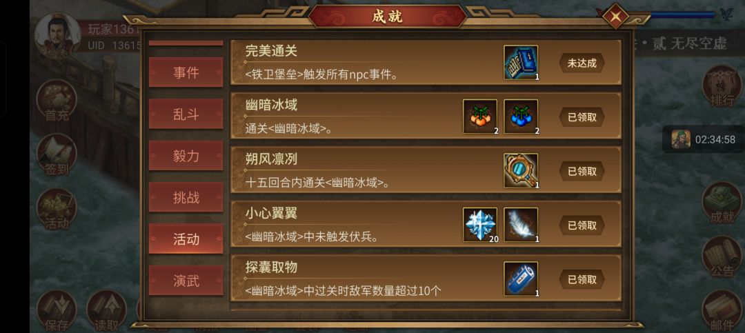 首先,我之前已经通关过,活动关了,本次用最少的资源又打了一次,并且没上自定义,所以本次攻略,有两种打法, 青龙打法,阵容推荐:浮生套武力果,貂蝉智力果真套,刘备【不需要培养】看时机放个白虎 阵容二,自定义,刘备不培养,白虎工具人 噩梦——地狱难度吃果浮动大,自己看着我图吃, 浮生貂蝉,清兵能力不够可以养个刘备 刘备,有万人就吃防御果,灵童皮, 以上纯属推荐,有想法可以培养自己主力 开局全体麻痹,姜