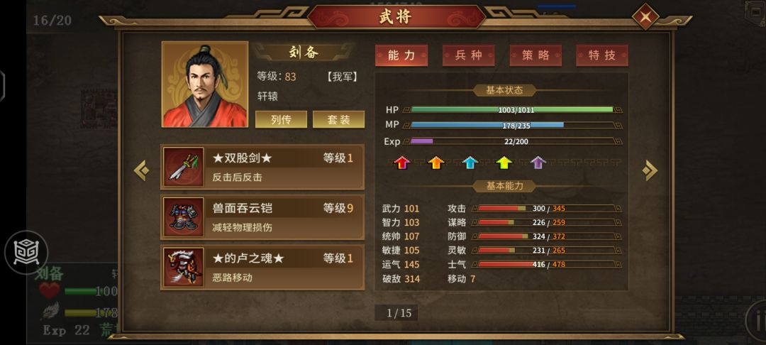 每个人的培养武将,装备不同,过关的配置也不尽相同,论坛内已经有一些优质的攻略,我这里也凑一篇,作为补充。 1.武将属性和装备见下图 2.分路配置,其中特技我只列明比较重要的 下路必须配置物理攻击,主力是孙尚香(锐不可当,物理必中),万人刘备(圣吞武器,无视距离反击),马超(未培养,装备是圣吞玄武甲+白银盾),随便一个人 上路必须配置物理攻击,主力是万人赵云(圣吞武器),随便三个人 左路必须配置法术