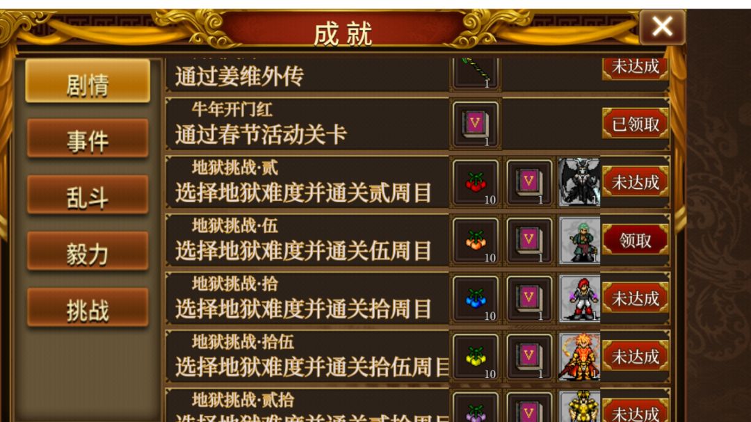 入圣三贼船陆续有两年多啦,一直是个菜鸟!以前一直自己看攻略玩打了两三周目发现果子没喂好彩蛋也落下好多,以为自己能行了重开!又玩了十周目普通,转地狱打不了,零充没锐啊。今年五月份开始加群入了v1,结果自定义下架了,得了十周目地狱奖励后以为自己真的行了又重开!一周目噩梦二周地狱陆续连肝带玩到现在,无姜维过了挑战2—17,过了地狱三十周,基本上所有装备能圣的都圣了,能吞噬的都吞噬了。 为了体验司马懿狂雷