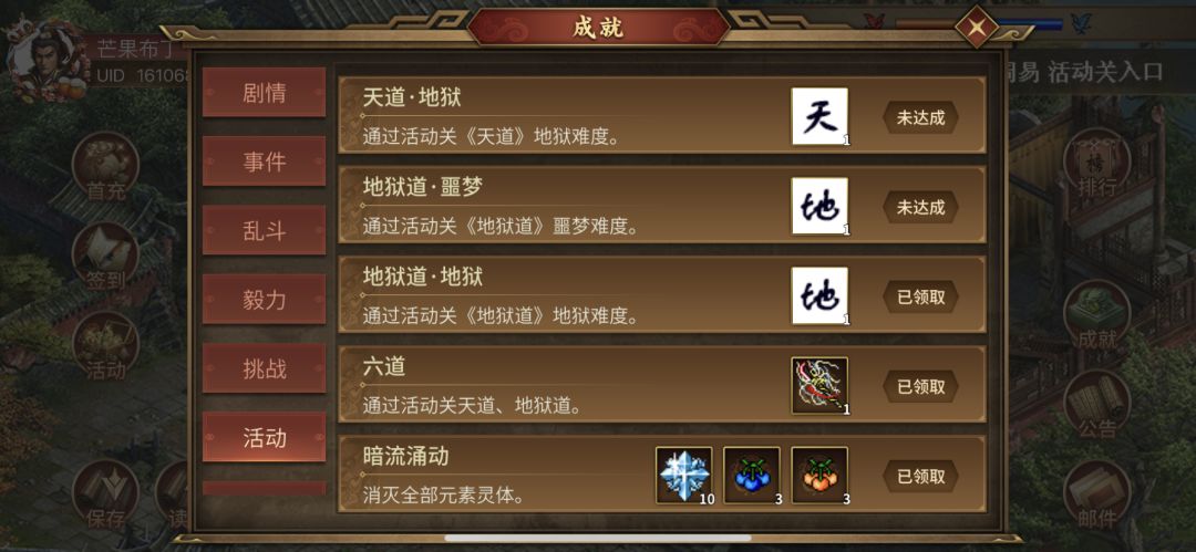 地狱道——地狱难度攻略 ——13群小回忆的master (建议先摸索打简单的攻略了解攻击路线) 角色及配置: 大概总共4个神将印、14个特技印、6个装备印记、秘典若干(8+)、爬塔3000层+ (注:主要看作用,相同作用的可以用其他武将替代) (注:本文所有未标明真、圣的武器默认为二阶武器) 刘备皇天: 作用:保左侧队伍、白虎消去队伍不良状态、魅惑敌人后消去敌人混乱状态、治疗左侧队伍、需要打伤害