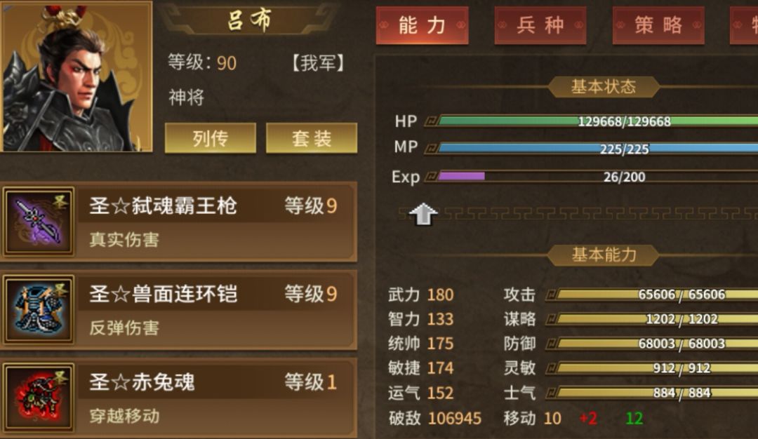 打法有很多种,仅供参考 属性够可以一回合,但是由于人员分散,对面还有神兵仙。所以容易一下炸不死。推荐先砍死神兵仙再炸。 主角团: 吕布:神将,健步如飞。 游兆:炸图。