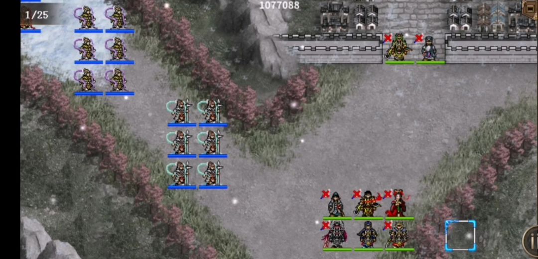 易卡关之一,强制20层,敌小兵大多带传国玉玺,还有物理攻击必防的藤甲兵。若司马带锐,一炸无脑轻松过。若只浮生带锐,回合数比较紧张,需兵分两路:第1路回归浮生打法(孙乾、马良、2个孙子兵法)走上路,并点杀第2排围墙里面的敌兵;第2路刘备、司马等几人走下路慢慢合力杀外围和第1围墙的敌兵。注:我军千万别突破第2排围墙,否则引出伏兵(上、中、下均有),灭敌回合数不足。