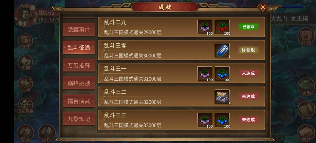 1.主力大司马,靠着剧情的挑战关打了个神将印,演武的3000换了生命加智,商店里买了锐不可当跟谋无遗策。前100层常规合司马圣武器,剩下的层数尽量把真浮生套合出来。 2.乱斗的难点其实只有固定关90(当然后面有没有增加一些难的固定关卡我还不知道😂),因为司马全屏法术刚开始无法释放,敌将红孩儿有法转,一释放就嘎了。我的思路就是利用貂蝉魅惑红孩儿+转身丹。魅惑可控的两回合,第一回合可利用红孩儿技能清一
