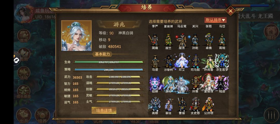 易卡关之一,强制90层。只保留一路队伍,池中的放弃。若有炸,很轻松过,第一回合,司马炸掉大部分小兵,并牺牲掉了(红孩儿带法转),孙乾、马良、两孙子兵法,回归浮生优先点杀3个龙女(全屏砂暴),再回归一一点杀剩余小兵。浮生围着中间池子走位,去灭3个红孩儿,别离池边缘太远或靠里面,否则引出不断刷新的伏兵。若没炸,采用“回归”打法也轻松过(30回合足够),只是慢些。#游戏种草计划#攻略