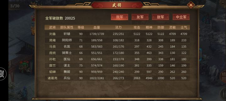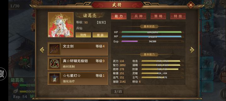 分享一下挑战关低配置,两千多智力就能过。主力:万人轩辕刘备,兵仙万人诸葛,貂蝉辅助。加上保人装备等,兵仙打折6666元宝,总共大约需要10000元宝。特技都是活动关送的,二百层给的锐不可当,没有破不屈的武将最后一关打的浮生府,分享一下心得和站位。 放弃下路,就只有上路八人出站,由于诸葛旋风需要四五次才能打死王路飞,需要带四个孙子兵法刚好能打死。 打的过程中发现,敌方谋略大于我方谋略,依靠